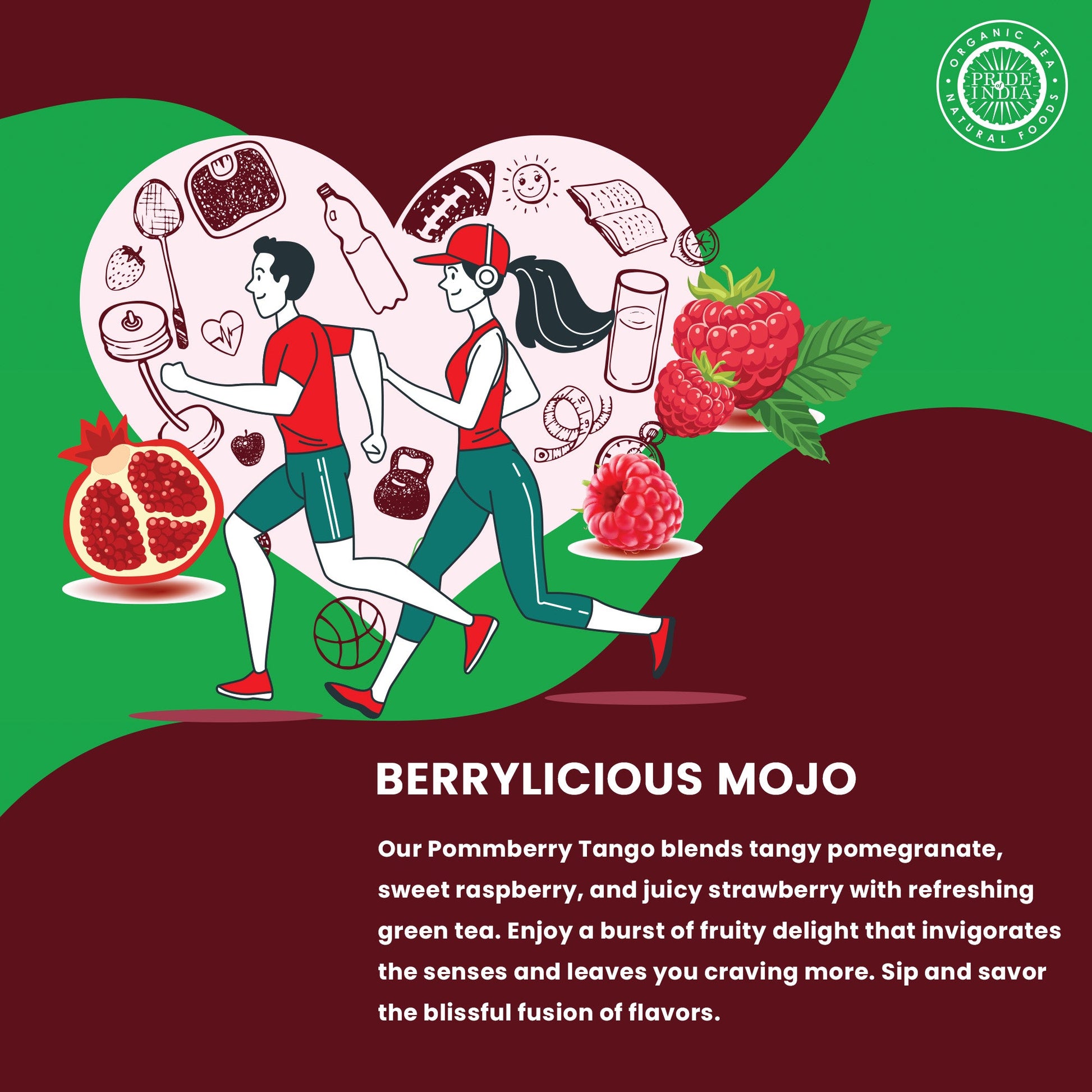 Pride Of India brings naturally grown food and herbal products from India that enhance the overall health of the human body through the centuries long tradition of consuming pure foods from farm to table. We are a family owned company and source all our ingredients from direct farms in order to preserve the quality as well as freshness of all our products. We value sustainable farming and aim to build a company that benefits the entire food chain from the grass root level upwards. We are committed to sourcing the freshest Green tea, handpicked from farms situated around the Indian subcontinent. Our cultivated pure tea render a wonderful experience and ignite taste buds while improving overall health as well as balance of the body. Pride of India PommBerry Merlot - Fruity Green Tea Bags has an extremely smooth flavor with no harshness or bitter aftertaste. This single estate tea is very rare and is naturally rich in antioxidants and flavonoids due to its purity. This green tea fuses the strength of the Indian Teas with unique health properties that are highly desired in a cup of tea.